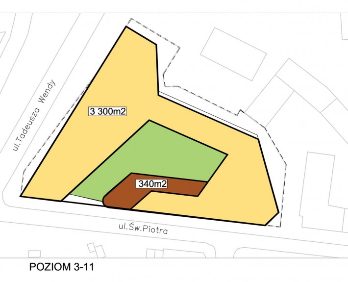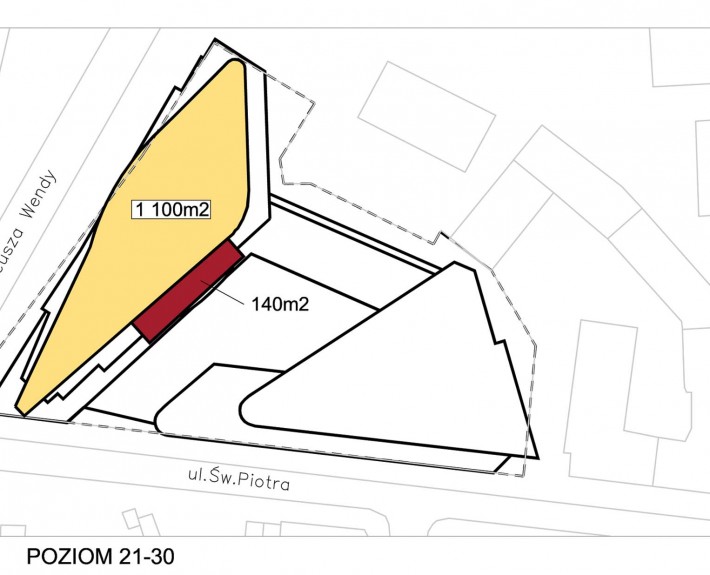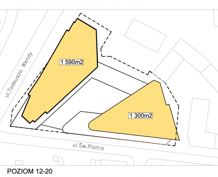 Projektowany budynek zlokalizowany jest w Gdyni na zbiegu ulic T. Wendy i Św. Piotra w sąsiedztwie zwartej zabudowy śródmiejskiej domów wielorodzinnych z usługami w parterze oraz rozbudowanego hotelu. Powierzchnia działki wynosi ok. 0.548h
