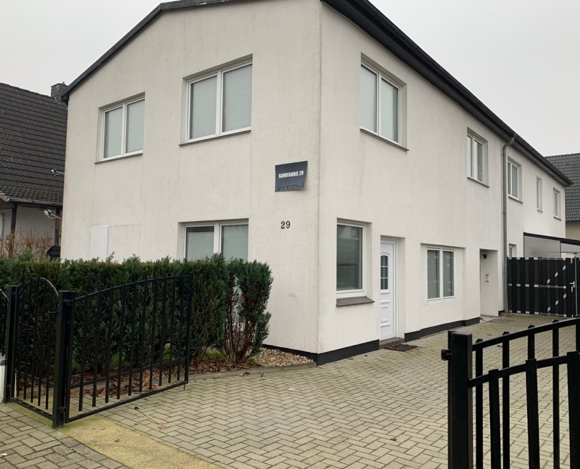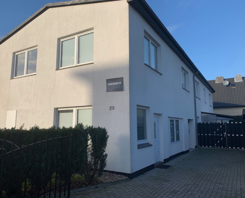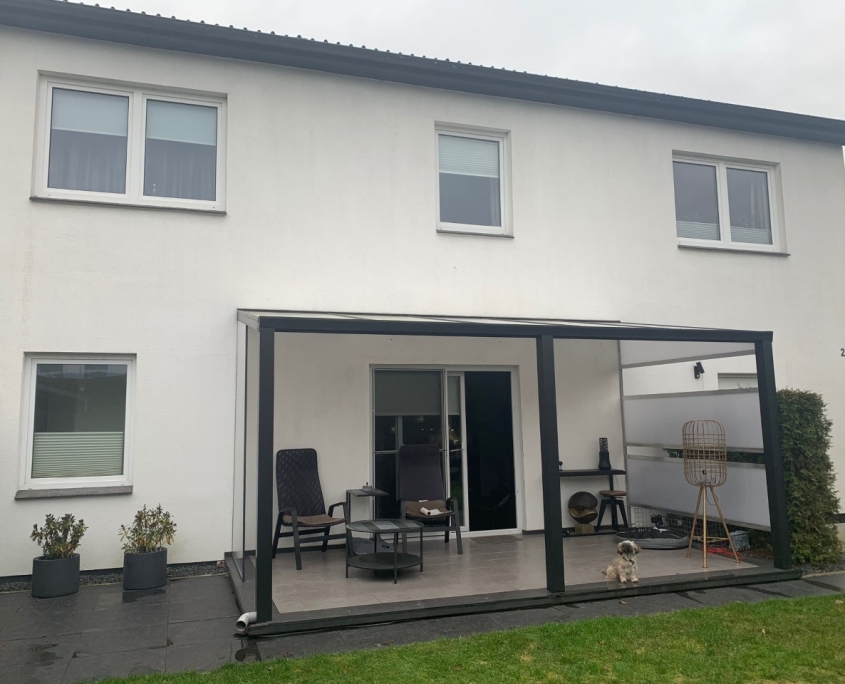 Na prośbę klienta podjęliśmy się zmiany wizerunku domu, który pomimo eleganckiej architektury nie wybijał się pośród podobnych domów w sąsiedztwie. Jednym z wyzwań było też ukrycie nieatrakcyjnych elementów konstrukcji elewacji frontowej.